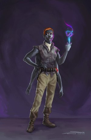 Calinthe’s companion is Zakuro, a four-armed Merchant of Magic and a Godblood, granddaughter to three gods: Lucognidus, the Mind Spirit Calinthe worships, the Death Spirit Sawyer, and the Water Spirit Liqua, giving her powers from all of them, as well as a requirement to follow all of their laws to keep the blessings of the gods. While many Godbloods in the Pentagonal Dominion, due to their descent and powers, have a great deal of prestige and some level of arrogance or expectations, or at least confidence, to go with it, Zakuro is lacking in self-confidence, believing herself to be stupid, and having a difficult time understanding she is of value.